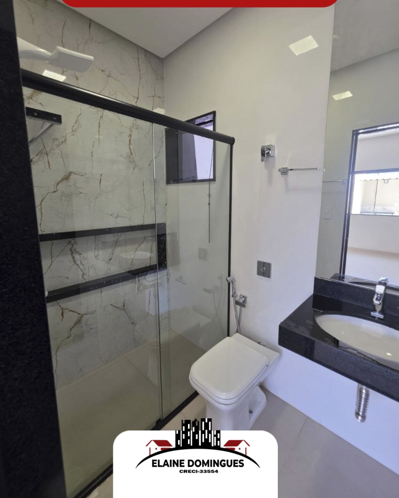- Banheiros com acabamento fino, contendo espelho, box e chuveiro